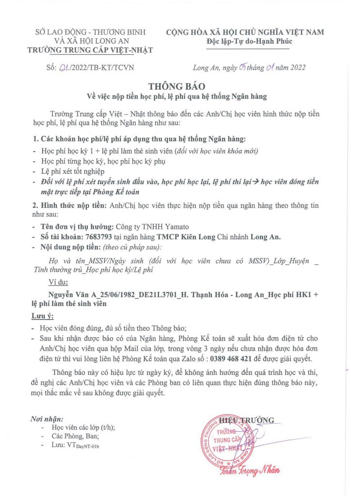 THÔNG BÁO TUYỂN SINH NĂM 2023 Trường Trung cấp Việt – Nhật thông báo tuyển sinh hệ Trung cấp chính quy năm 2023, gồm các ngành nghề cụ thể như sau: I. NGÀNH ĐÀO TẠO TRUNG CẤP CHÍNH QUY Stt Ngành đào tạo Mã ngành Học phí/HK Thời gian đào tạo Đối tượng 1 Kế […]